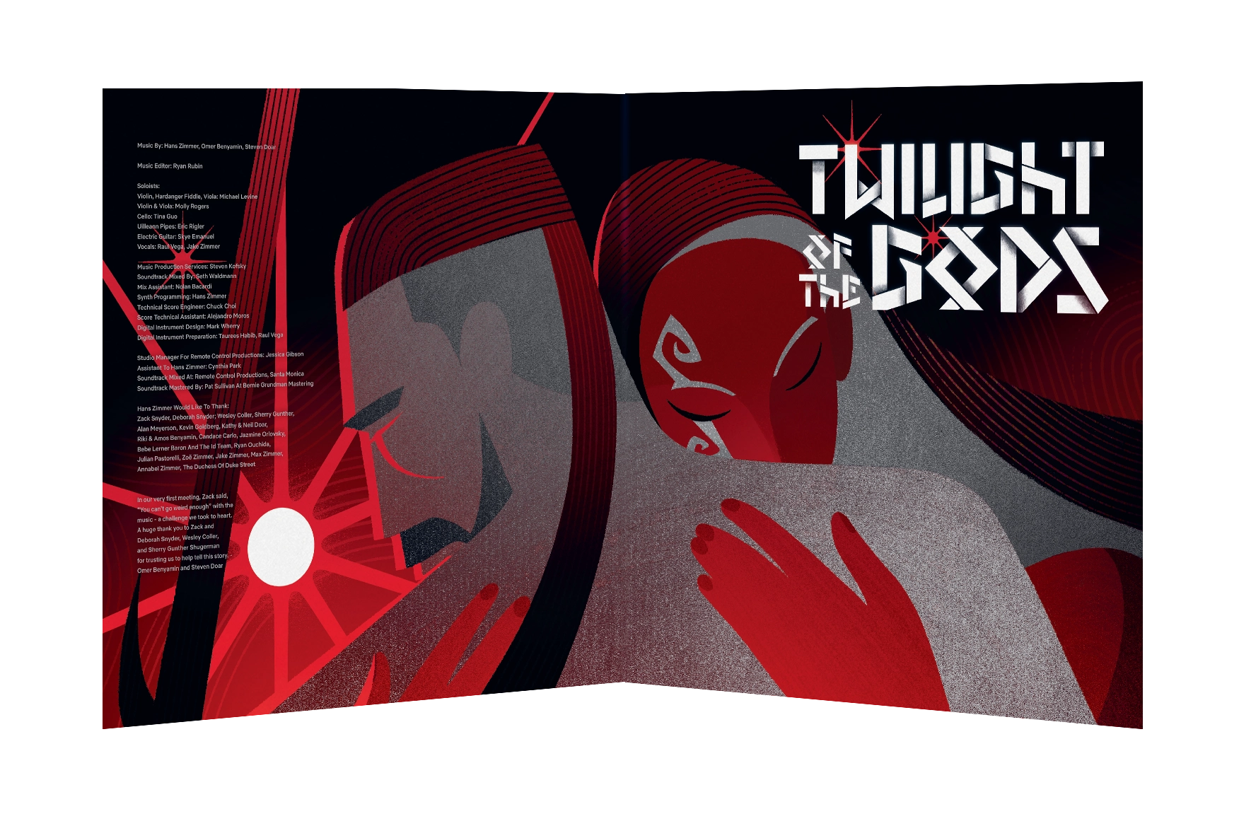 Twilight of the Gods is the newest Netflix phenomenon from the vision of Zack Snyder. The animation series brings the spectacular world of ancient Norse mythology to life. The series is acompanied by a epic, haunting and beautiful film score created by Hans Zimmer, Omer Benyamin and Steven Doar. This collaboration between renowned composers results in a cinematic masterpiece that perfectly complements Snyder's visual storytelling. Experience the dramatic power of Twilight of the Gods through this visionary soundtrack, a must-listen for fans of epic film music.