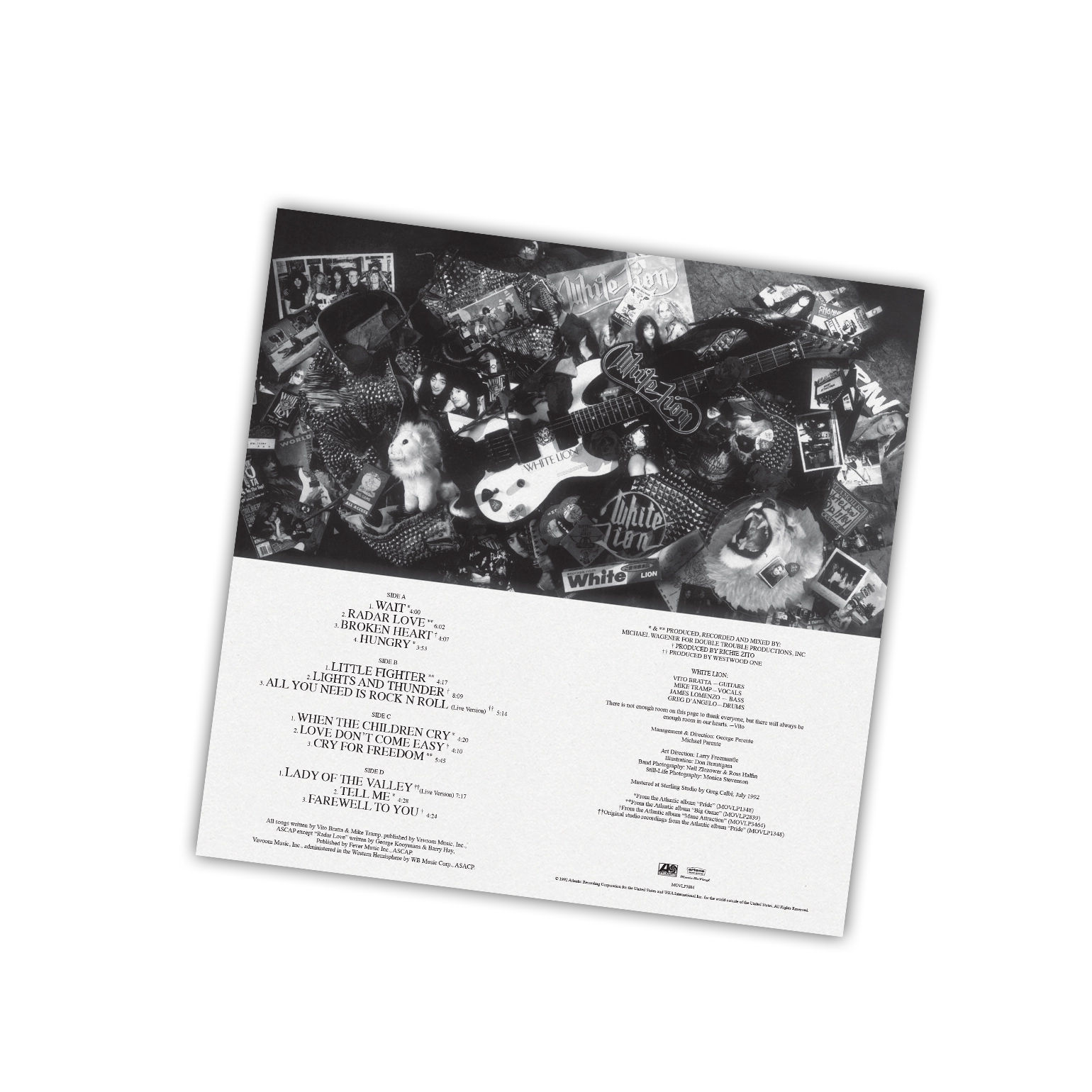 The best of White Lion is available as a limited numbered edition of 1500 copies on crystal clear vinyl and contains an insert.