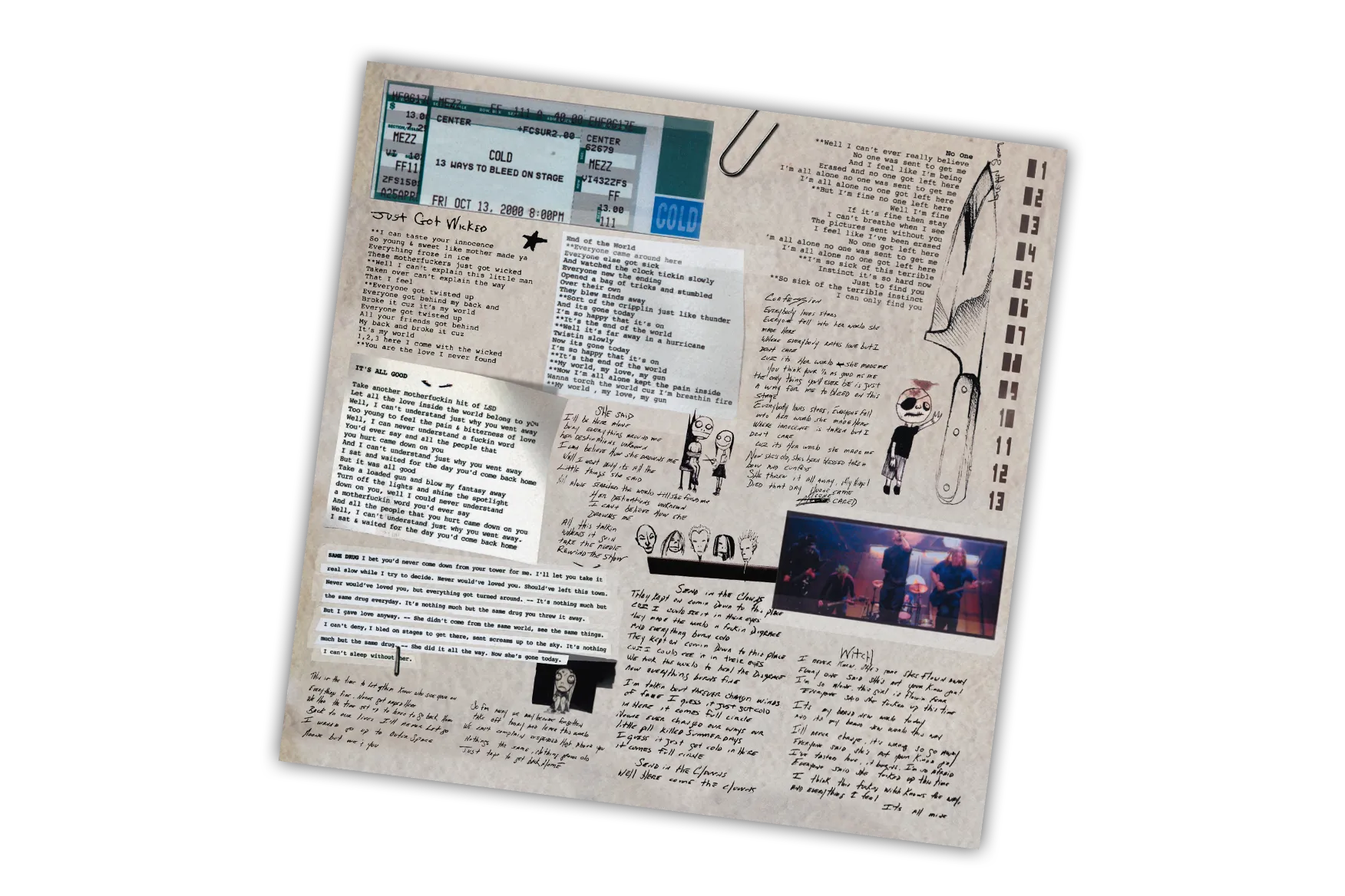 13 Ways To Bleed On Stage is the second studio album by American rock band Cold. The singles "No One" and "Just Got Wicked" gained substantial commercial success and were used in the soundtrack to the film "A Walk To Remember" and in the video game "Jet Grind Radio". The album peaked at #98 on the Billboard Top 200 charts and was certified gold in 2002.