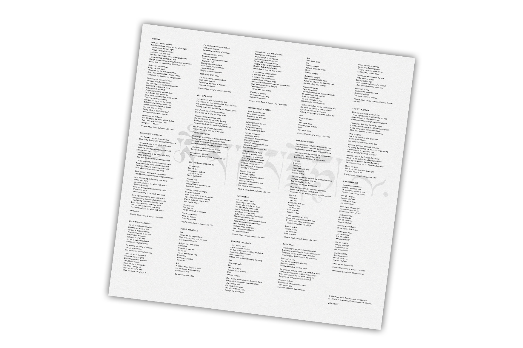 Honest is the second album by the English rock and pop band Dave Stewart and the Spiritual Cowboys released in 1991. The band was formed by David A. Stewart who is known for being part of the British pop duo Eurythmics. Together with Annie Lennox, Stewart was inducted into the Songwriters Hall of Fame in 2020 and both were inducted into the Rock and Roll Hall of Fame in 2022. Stewart has won numerous awards, including Best British Producer at the 1986, 1987 and 1990 Brit Awards.