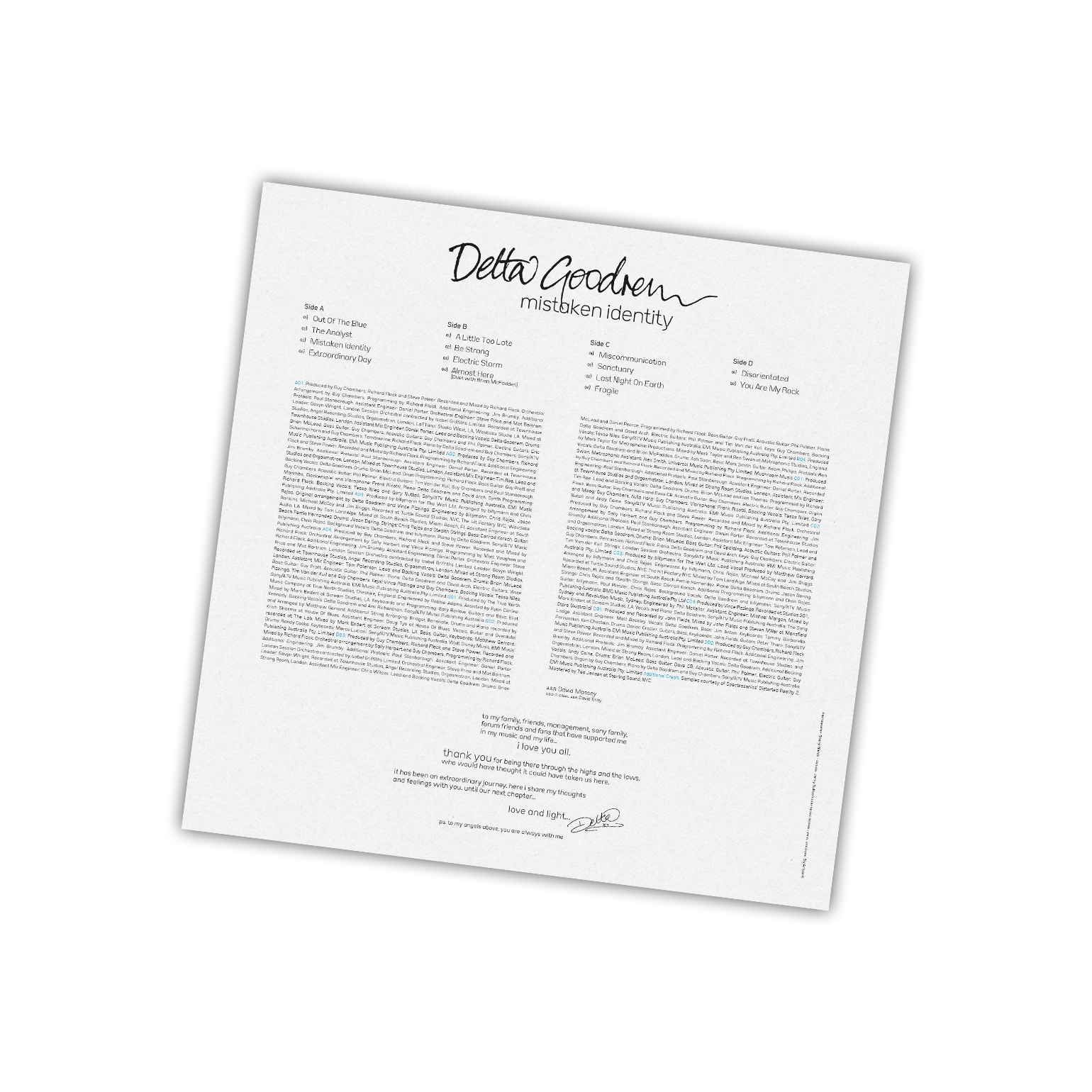 Mistaken Identity is available as a limited edition of 1000 numbered copies on translucent red coloured vinyl, housed in a gatefold sleeve and includes an insert with lyrics.