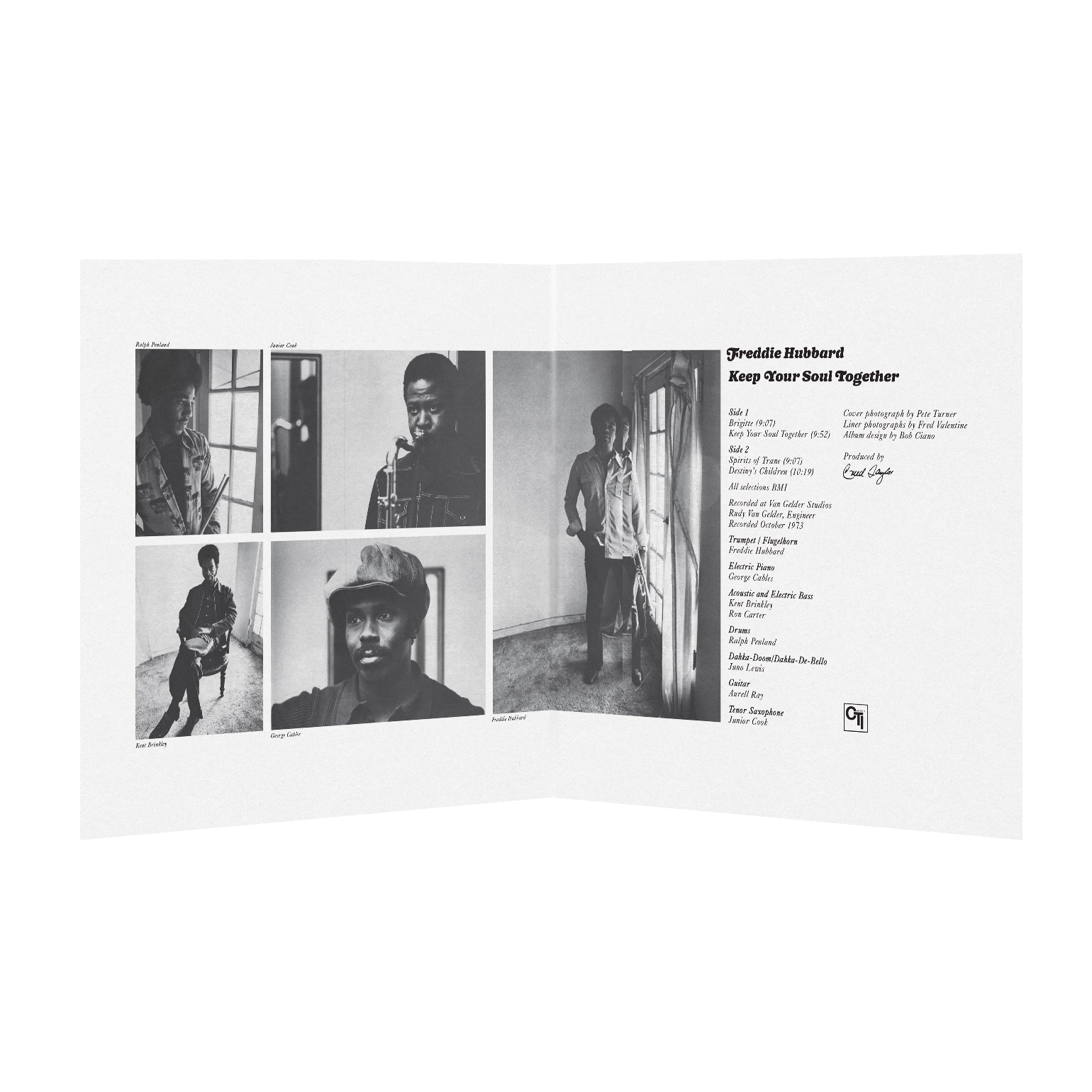 Keep Your Soul Together (1973) is jazz trumpeter Freddie Hubbard’s fifth studio album released on Creed Taylor's CTI label. The album features Hubbard alongside an ensemble that includes Junior Cook on tenor sax, George Cables on keyboards, Aurell Ray on guitar, Kent Brinkley or Ron Carter on bass, Ralph Penland on drums, and Juno Lewis on percussion. The album’s sound, though occasionally funky, is rooted in creative jazz, showcasing Hubbard in peak form across four of his original compositions.
