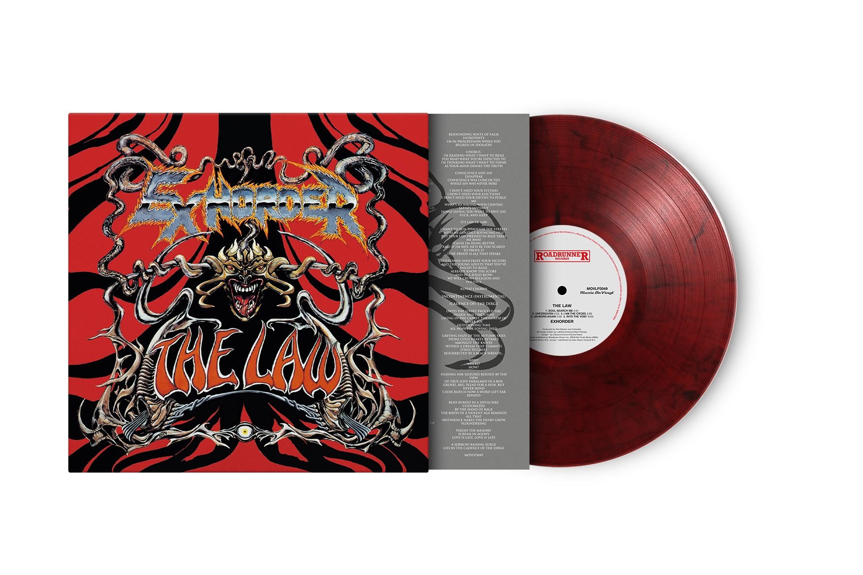 The Law is available as a limited edition of 1000 individually numbered copies on red & black marbled vinyl and includes an insert.