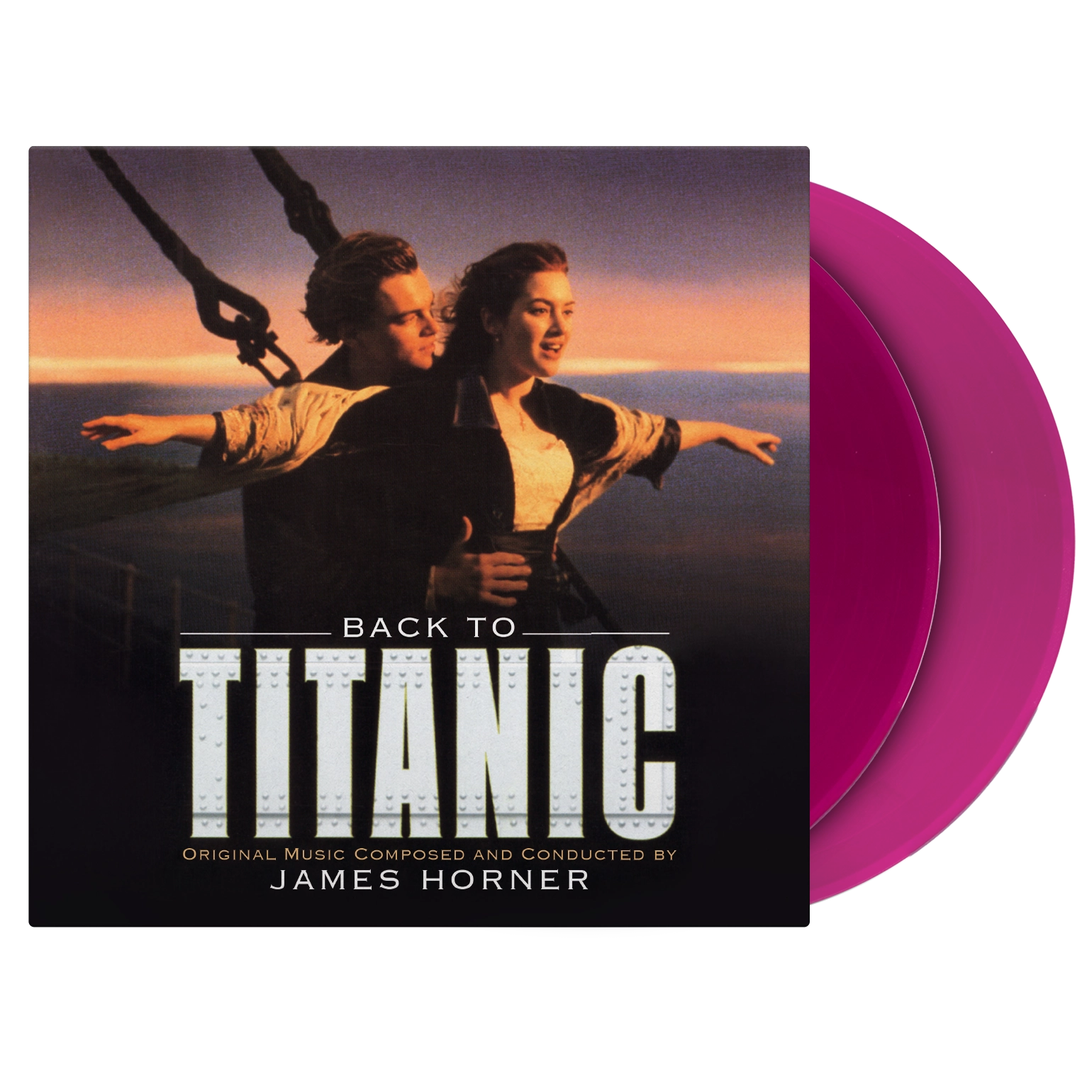 The soundtrack of Back to Titanic is available as a limited edition of 1500 individually numbered copies on violet vinyl. The records are packaged in a deluxe sleeve finished with linen laminate and includes a 4-page booklet with liner notes by director James Cameron.