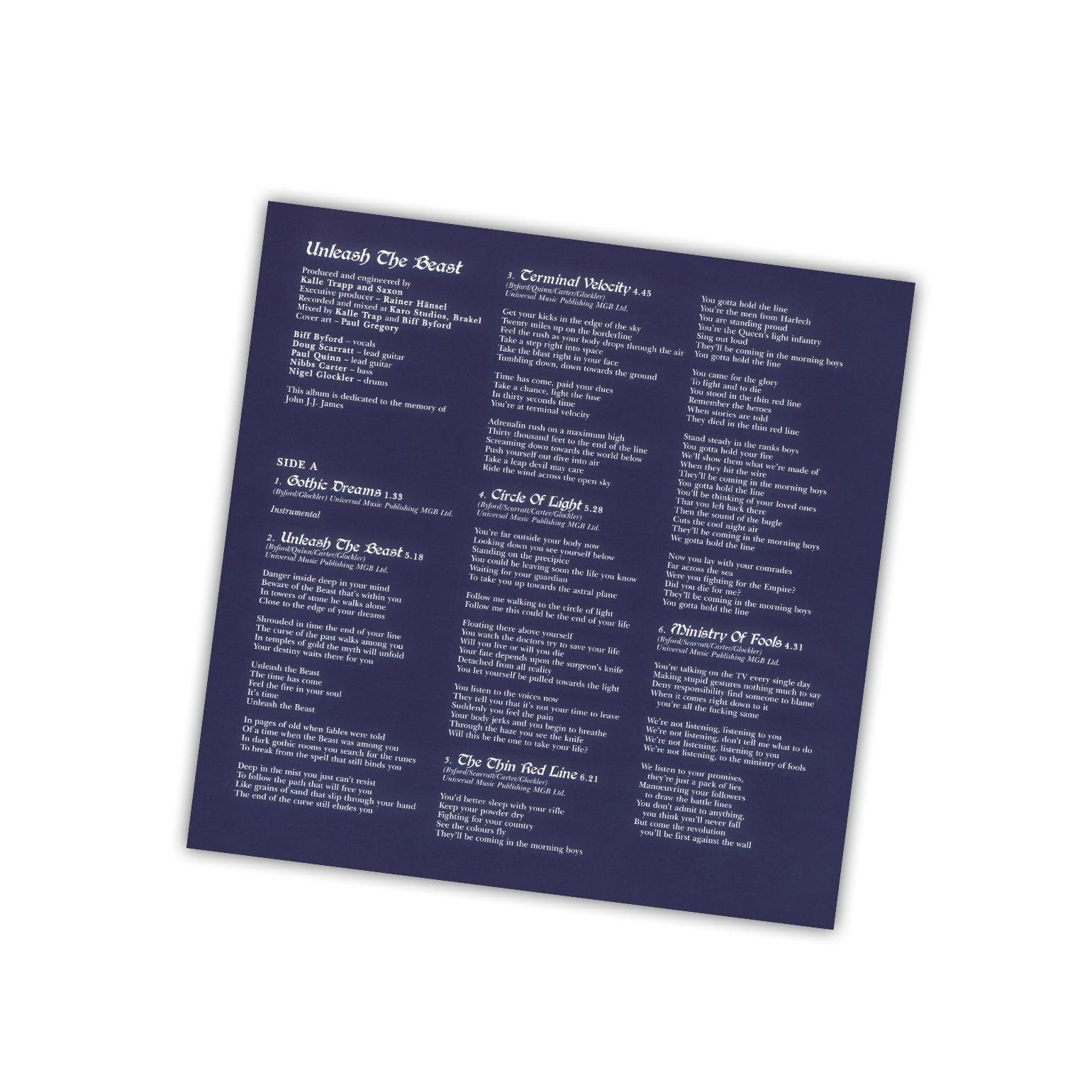 Unleash The Beast is available as a limited edition of 1500 individually numbered copies on red colored vinyl and includes an insert.